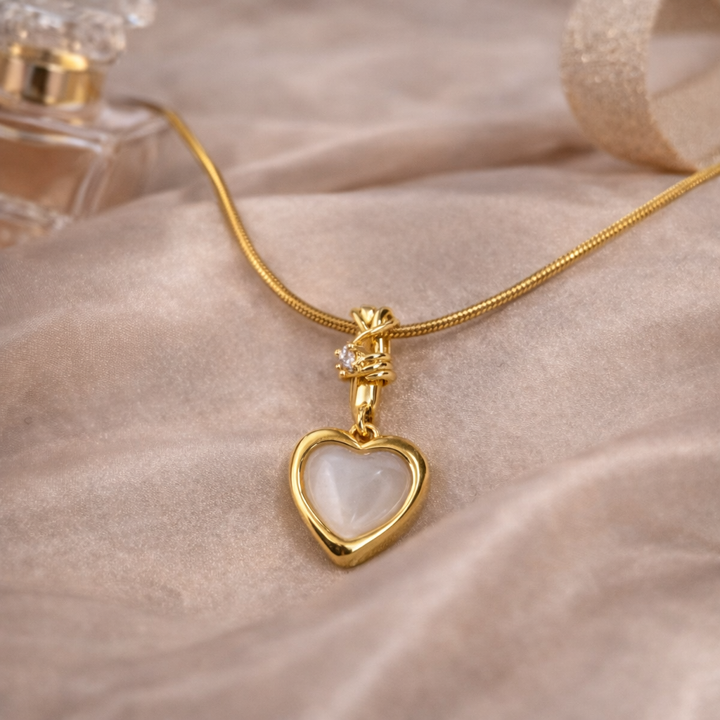 A graceful expression of elegance, this pendant necklace features a softly glowing heart design framed in a smooth, polished silhouette. The gentle sheen of the heart adds a romantic yet refined touch, making it perfect for everyday styling.