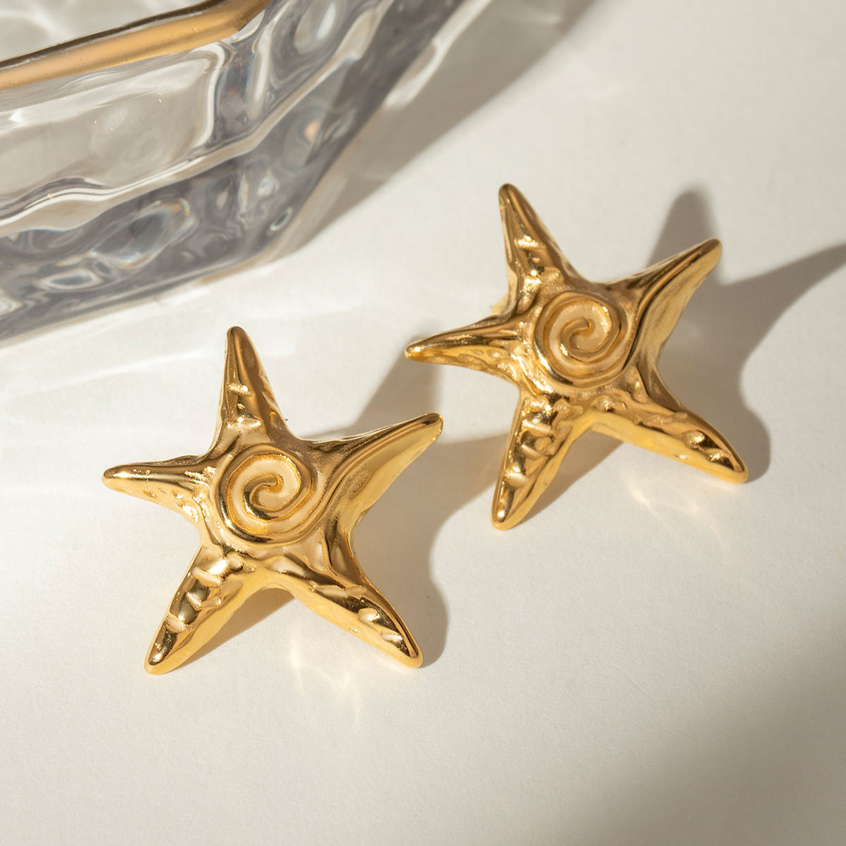 - Design: Starfish-inspired stud earrings with spiral detail